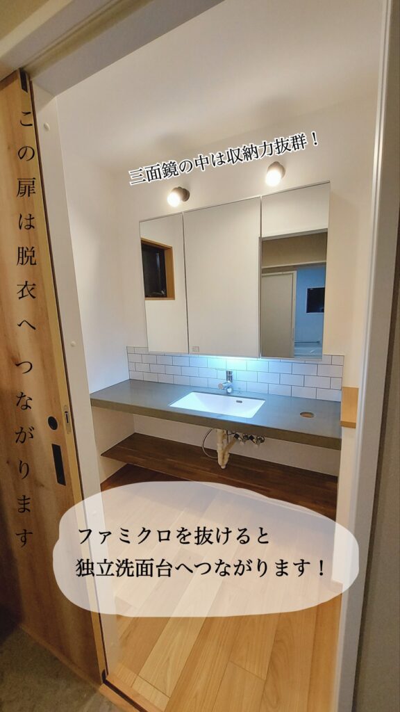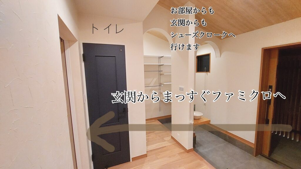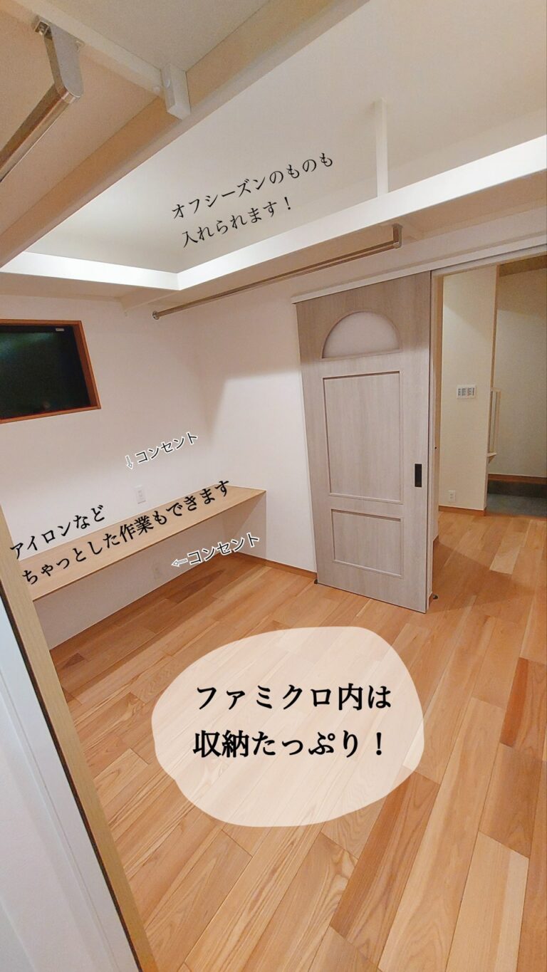 こんにちは。今回は社員宅をご紹介させていただきます。こちらは2022年に建てられたお宅。30代のご夫婦と、お子様が2人の4人家族です。 ●まずはこだわりの帰宅導線をご紹介します。 こちらは玄関全体図です。右手にシューズクロークがあります。アーチ壁に目隠しとなるカーテンなどを付けることで、来客時にすっきりと見せることができます。 ●外の汚れを家に持ち込まない工夫のご紹介☟ 帰宅してすぐに手洗いしそのままファミリークローゼットへ向かうことができます。 ●ファミクロ内は使いやすさ重視! コンセントは反対側にもあるので、アイロン作業、掃除機の充電などにも便利!社員宅では棚の下がルンバの定位置になっております。そしてファミクロをそのまま真っすぐ抜けると・・・ ●独立洗面所と脱衣所 独立洗面台があり、さらにその奥には脱衣所があります。玄関から一直線の配置になっているため、手洗い→着替えの流れがスムーズです。脱いだものもそのまま脱衣所へ向かってポーイっとできるため、脱ぎっぱなしを防げます。朝の身支度や、お風呂上がりの着替えもしやすく、子ども達も自分で身支度できちゃいます。 ちなみに浴室も広々。(夏場は帰宅した子ども達に靴下を脱がせ、浴室で足を洗わせていました笑) 暮らしに合わせていろいろな工夫を考えるのも楽しいですね。こんな事に困っている。こうなったら便利!など、ご相談に合わせてご提案させていただけると幸いです。